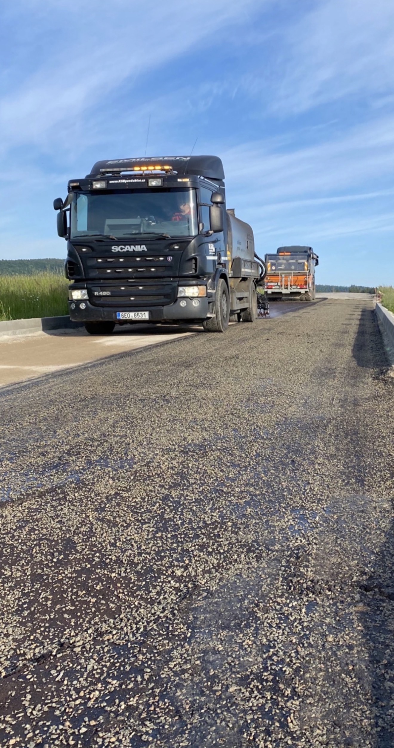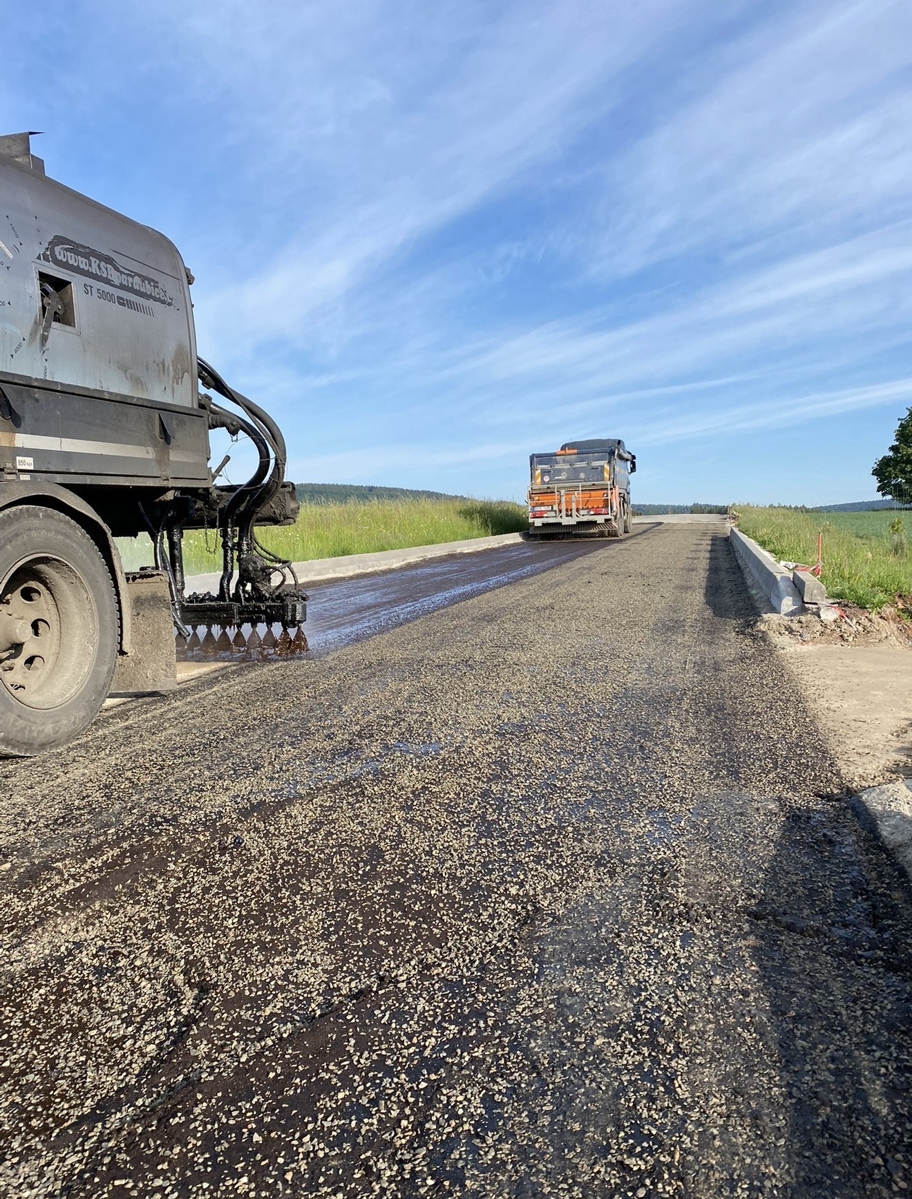 Infiltrační postřik se zadrcením frakcí 4/8 pro firmu M-silnice v obci Křenov.