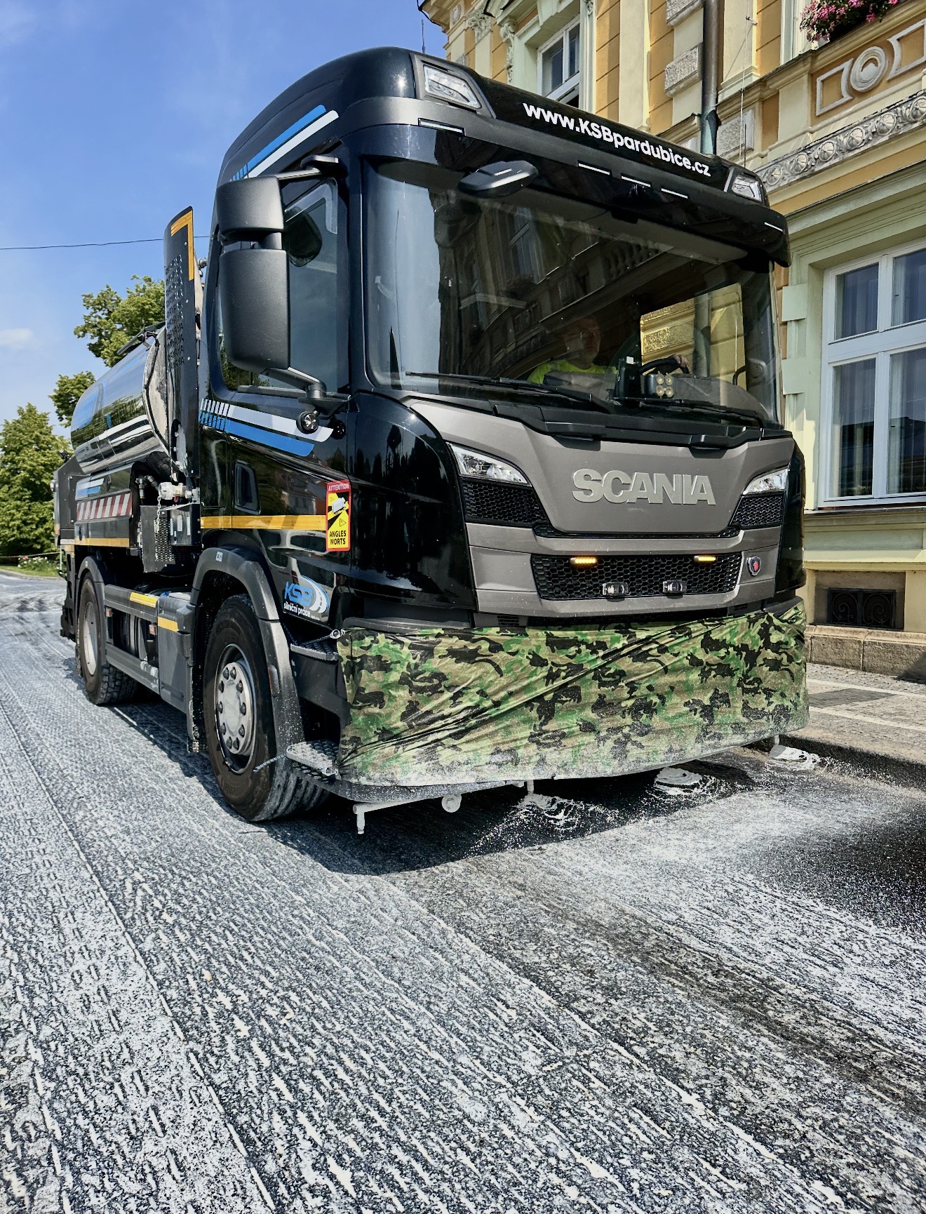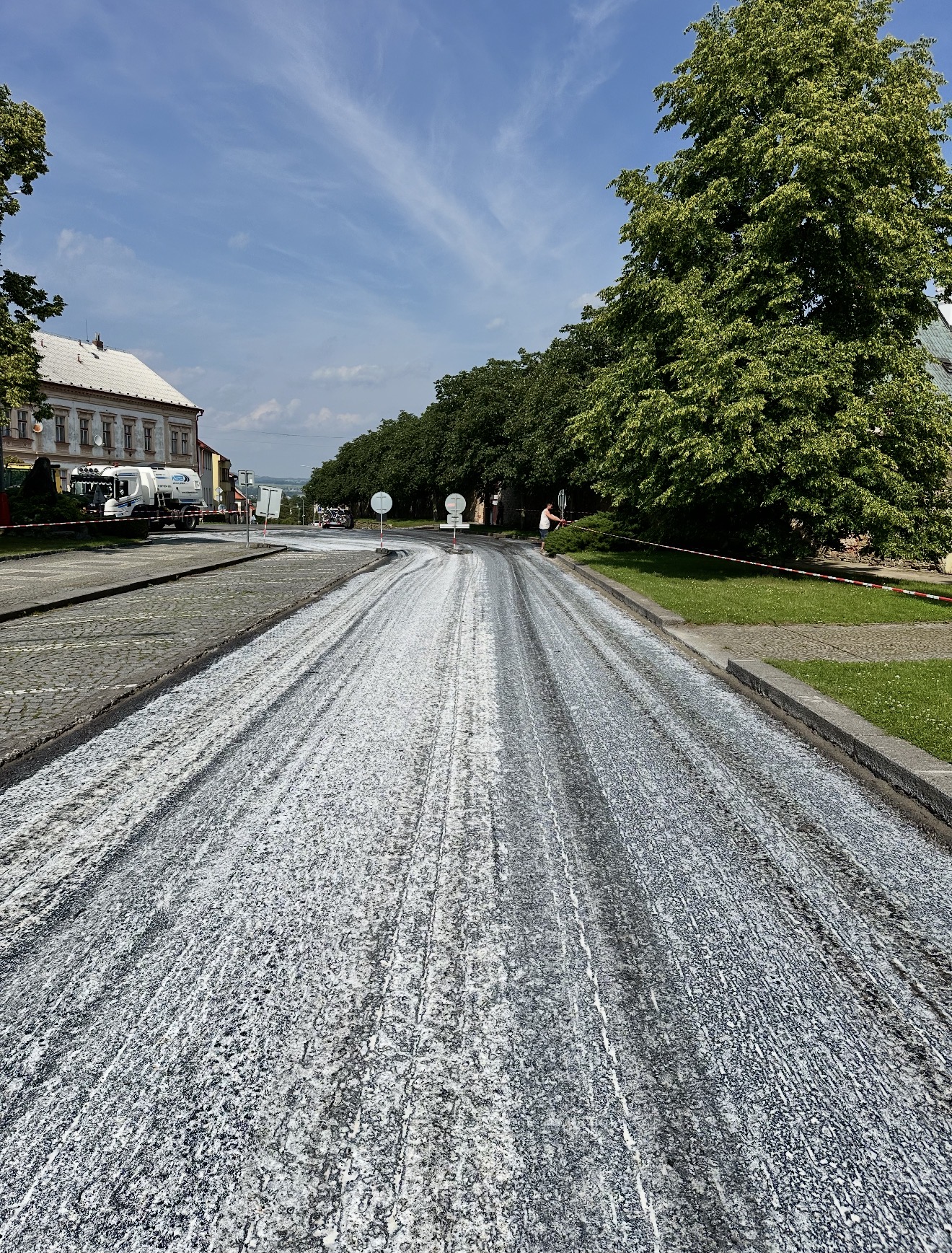 Swietelsky stavební s. r. o. Aplikace spojovaciho postřiku a vápenné suspenze pro firmu Swietelsky v obci Opočno.